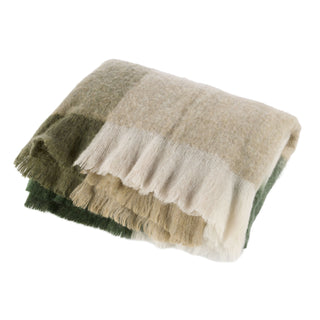 This Bowie Wool Blend Woven Throw is crafted from a soft touch wool, acrylic and polyester blend in a green, grey and dark green shade.